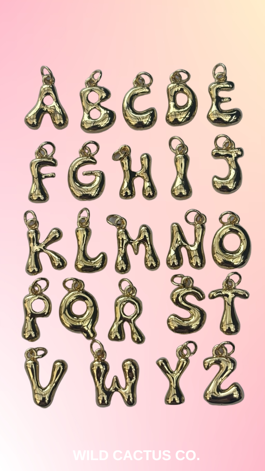 Handmade Natural Agate Beaded Necklace with One Bubble Letter Charm