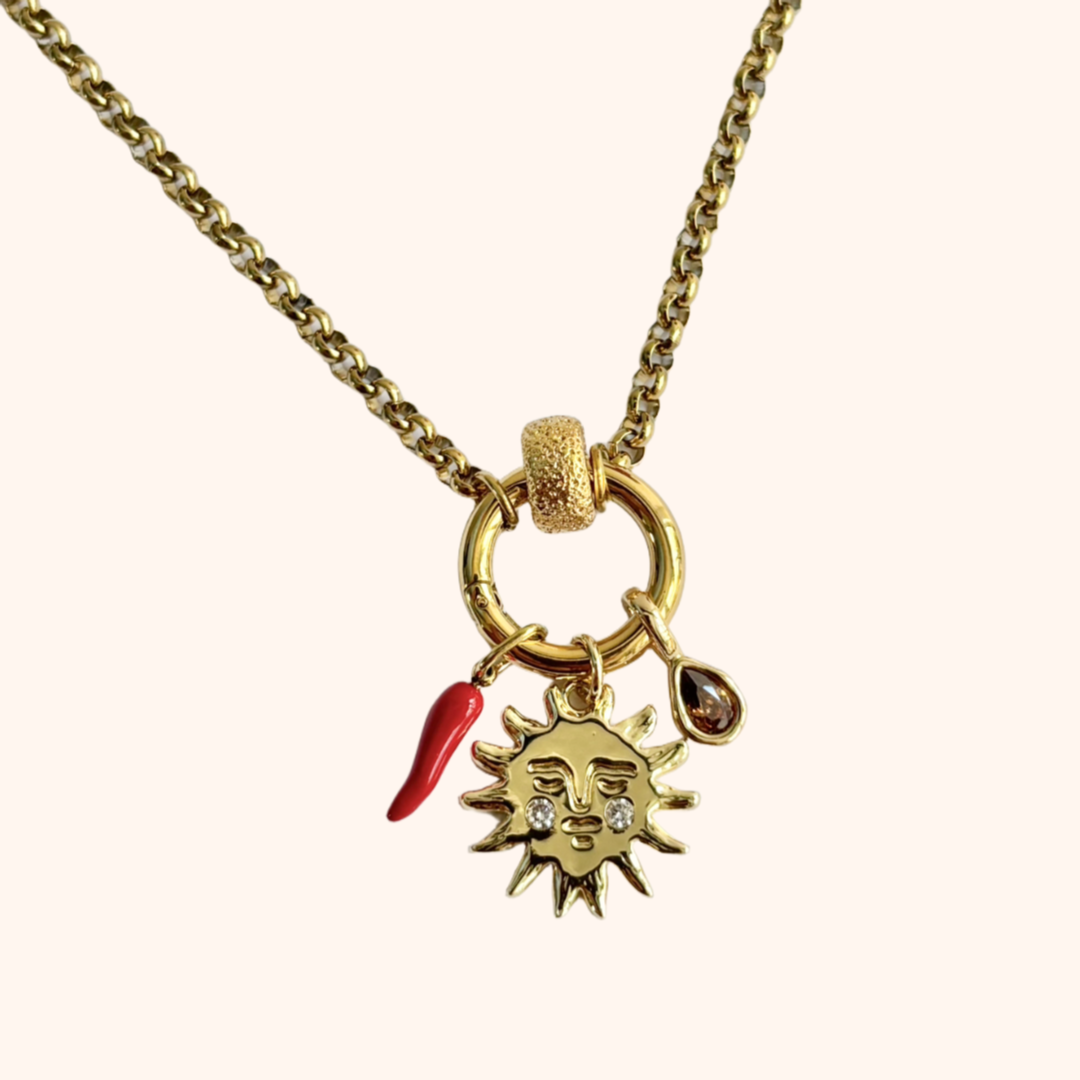 Gold Plated Stainless Steel Chill/ Sun/ Amber Topaz Charm Necklace