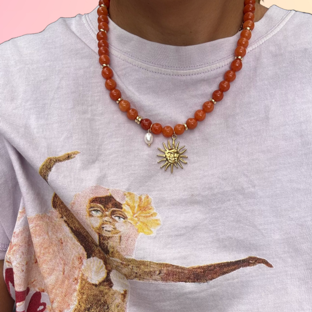 SUN PEARL BEADED NECKLACE [ORANGE]